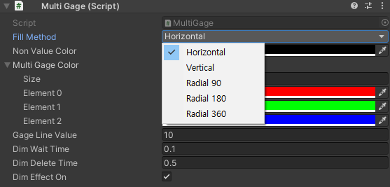 체력바로만 쓸것도 아니고 좀 더 다양하게 쓸 수 있도록 Unity Image UI의 Fill Method에 대응하도록 만들었다.