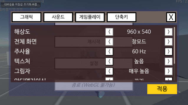 설정 창은 여태 만들어본 적이 없어서 유니티 기본 그래픽 설정 변경에 대해 알아볼 겸 먼저 만들어보게 되었다.